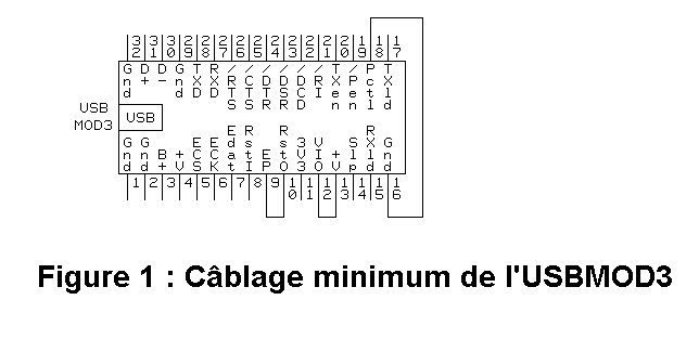 Le dessinateur a malencontreusement décalé plusieurs lignes de connexion dans la figure 1 "Câblage minimum de l'USBMOD3".